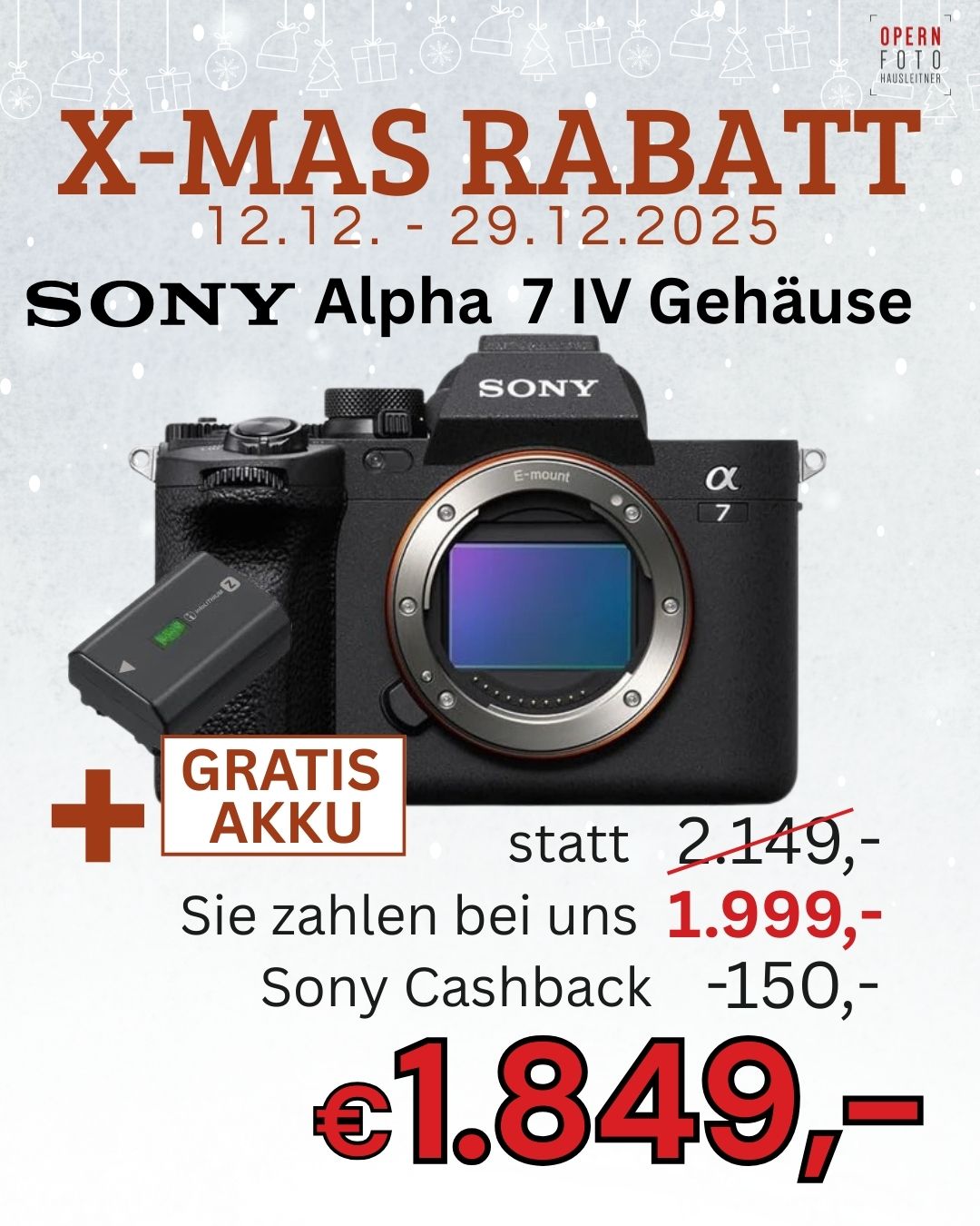 Sony Alpha 7 IV Gehäuse (ILCE7M4B) + Gratis Akku | € 150 Cashback bis 31.01.2026 auf www.sony.at/cashback/winter